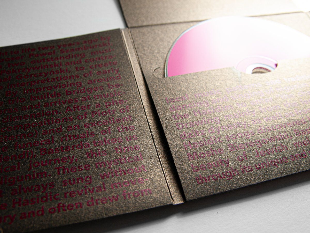 Beautiful CD release of Bastarda latest album "Nigunim" (Multikulti Project). Designed by Jarosław Pawlicki from PNEUMA Studio. Printed on dark gold decorative paper!